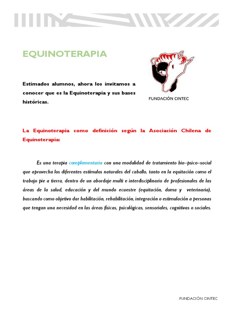 en las áreas de equitación, salud y educación, buscando la rehabilitación, integración