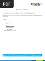 AFP ProVida S.A. certifica que la Cuenta de Capitalización individual número 1008-1143-0100004137, perteneciente al afiliado(a),