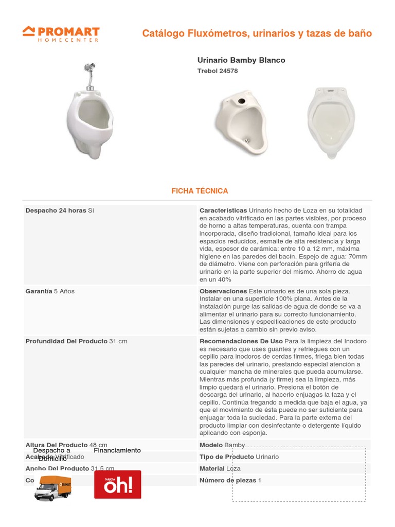 Garantía 5 Años Observaciones Este urinario es de una sola pieza.