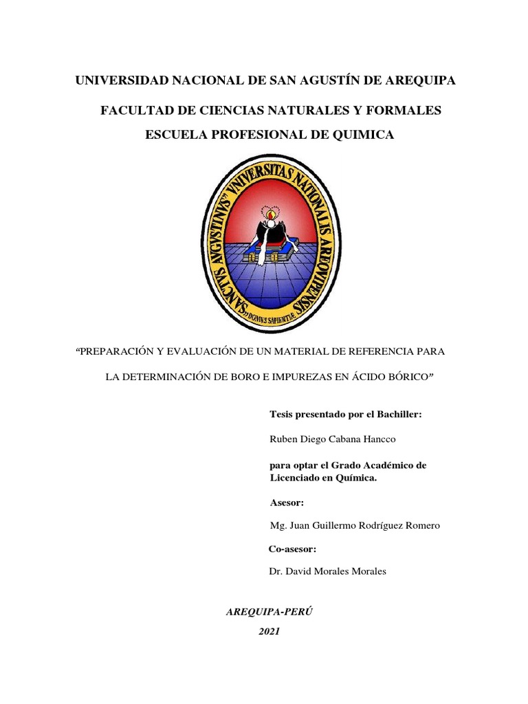 The objective of this research work is to obtain a boric acid reference material that verifies