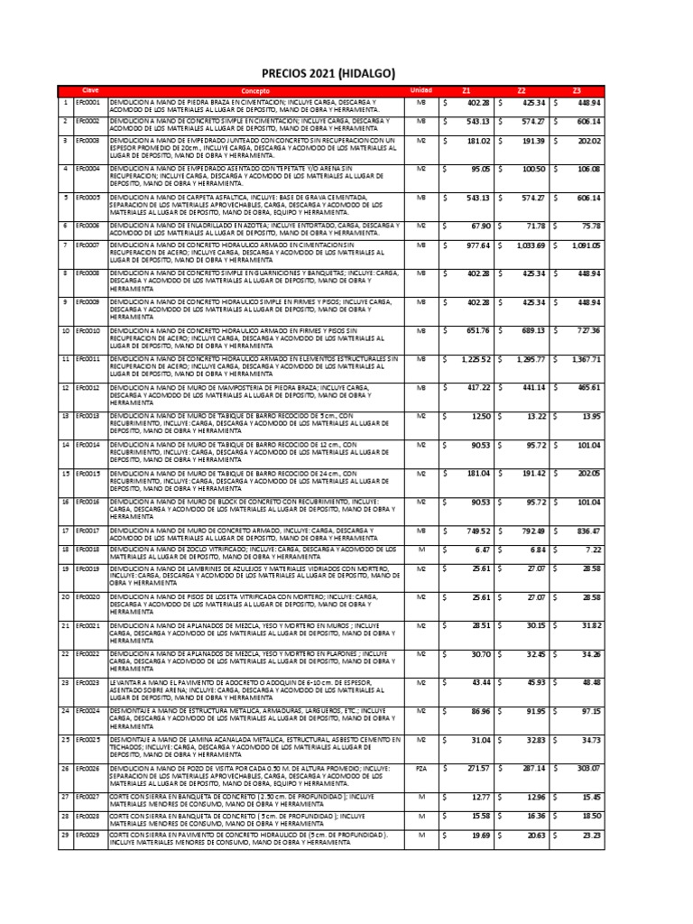 PRECIOS 2021 (HIDALGO)