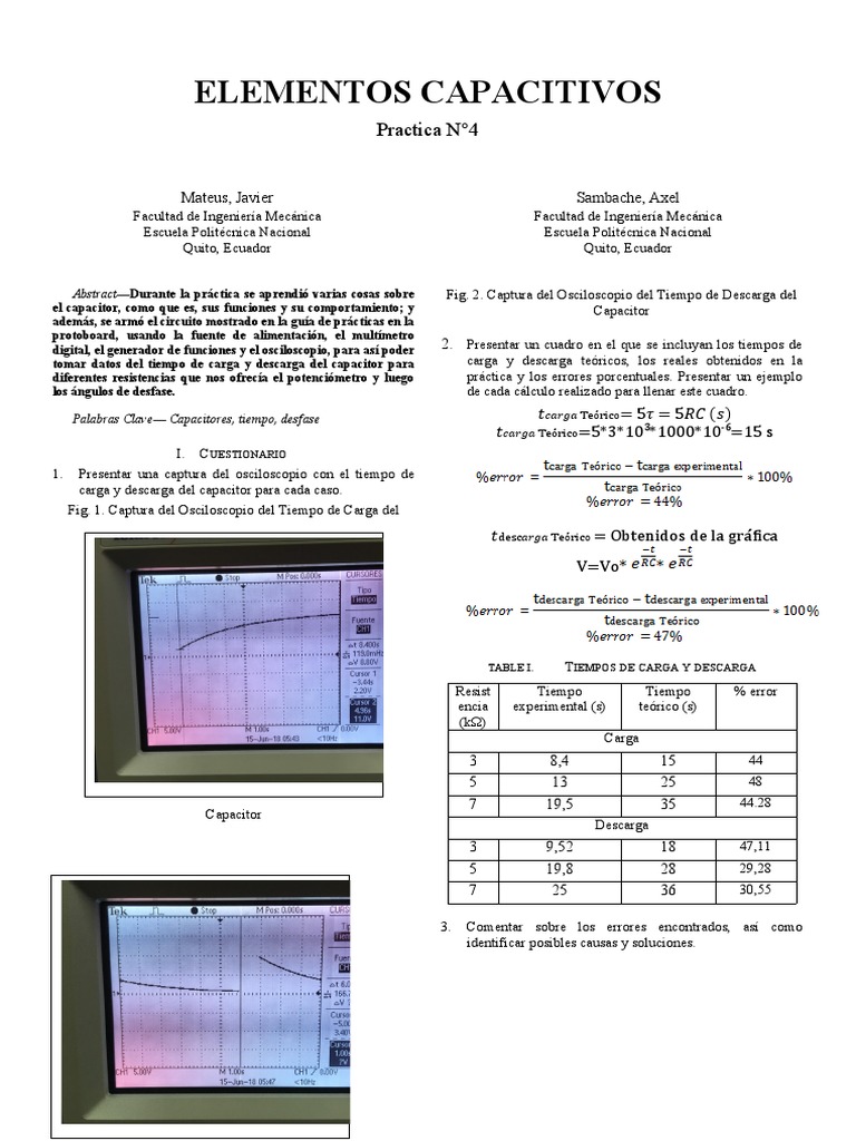 Abstract—Durante la práctica se aprendió varias cosas sobre Fig. 2. Captura del Osciloscopio del Tiempo de Descarga del