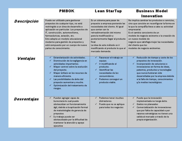 PMBOK Lean StarTup Business Model