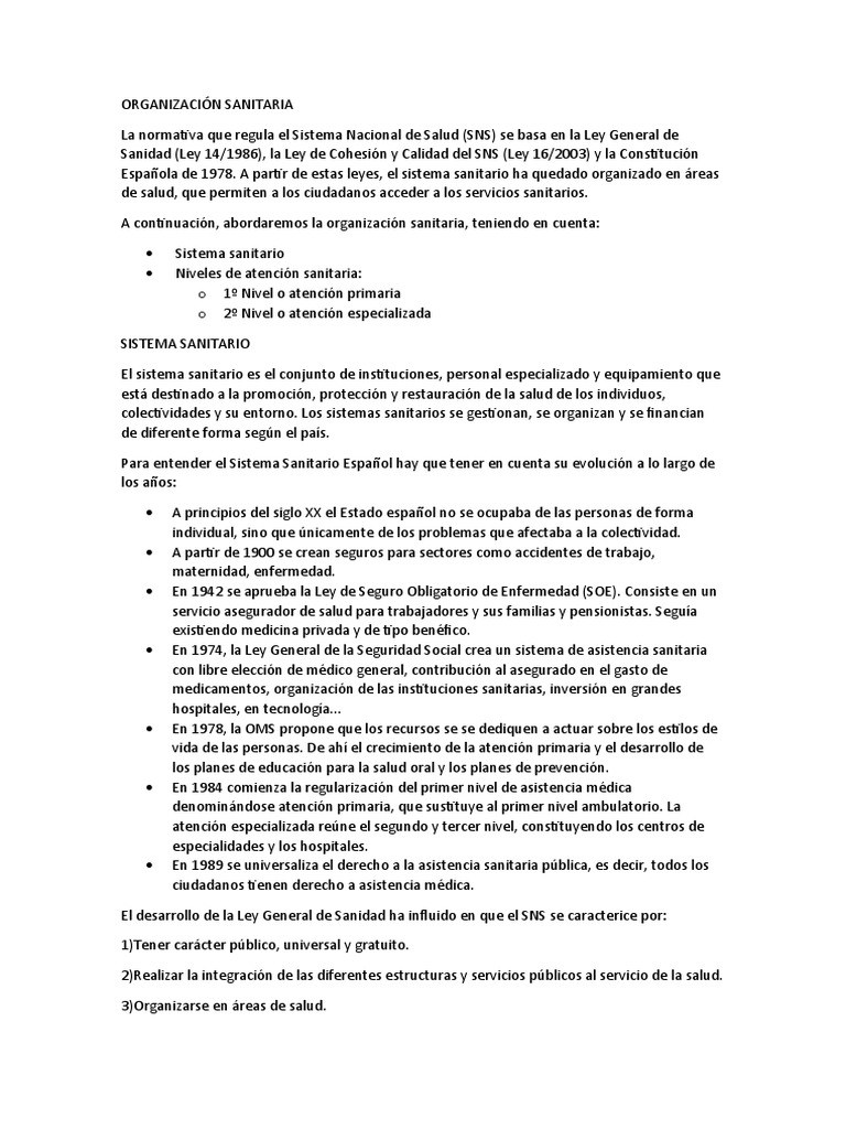 A continuación, abordaremos la organización sanitaria, teniendo en cuenta: