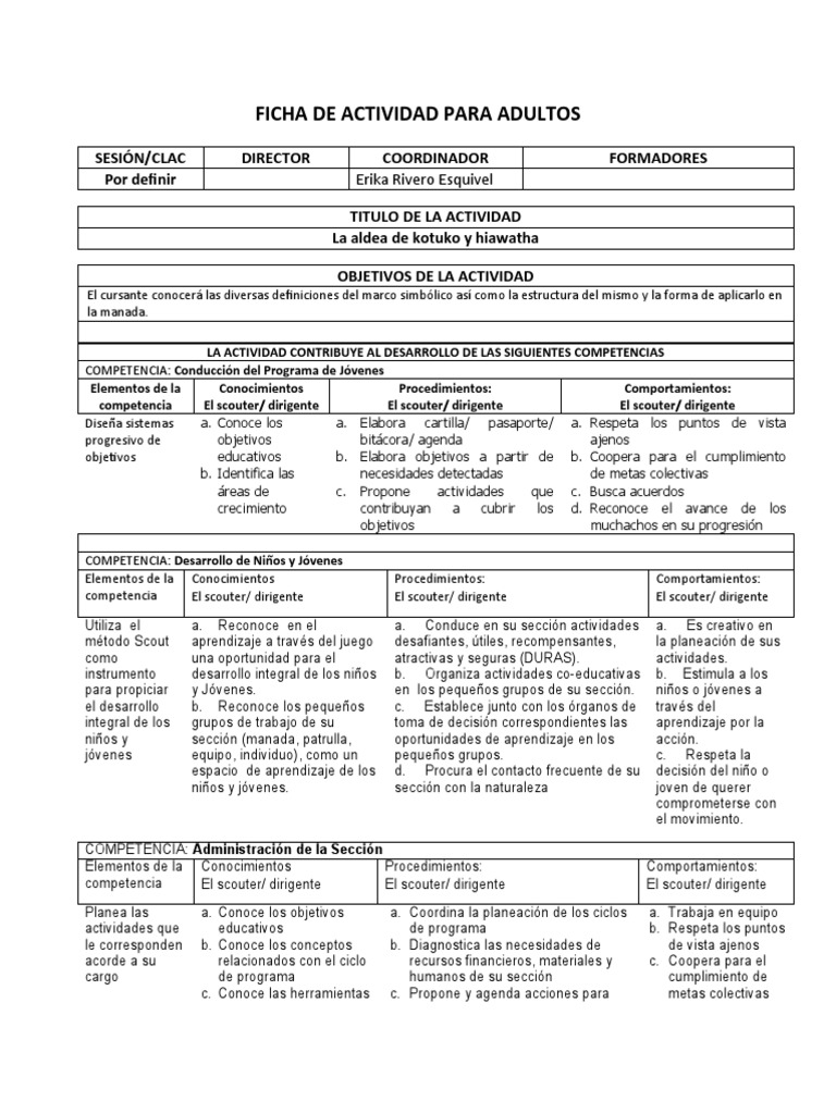 1. El equipo usará esta actividad dinámica en base a la técnica scout, para facilitar el desarrollo de competencias