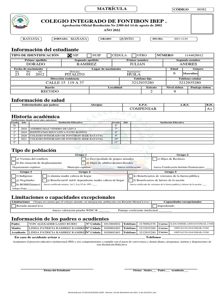 Generado por SYSCOLEGIOS.COM Viernes, 03 de Diciembre de 2021 a las 03:29:01 pm