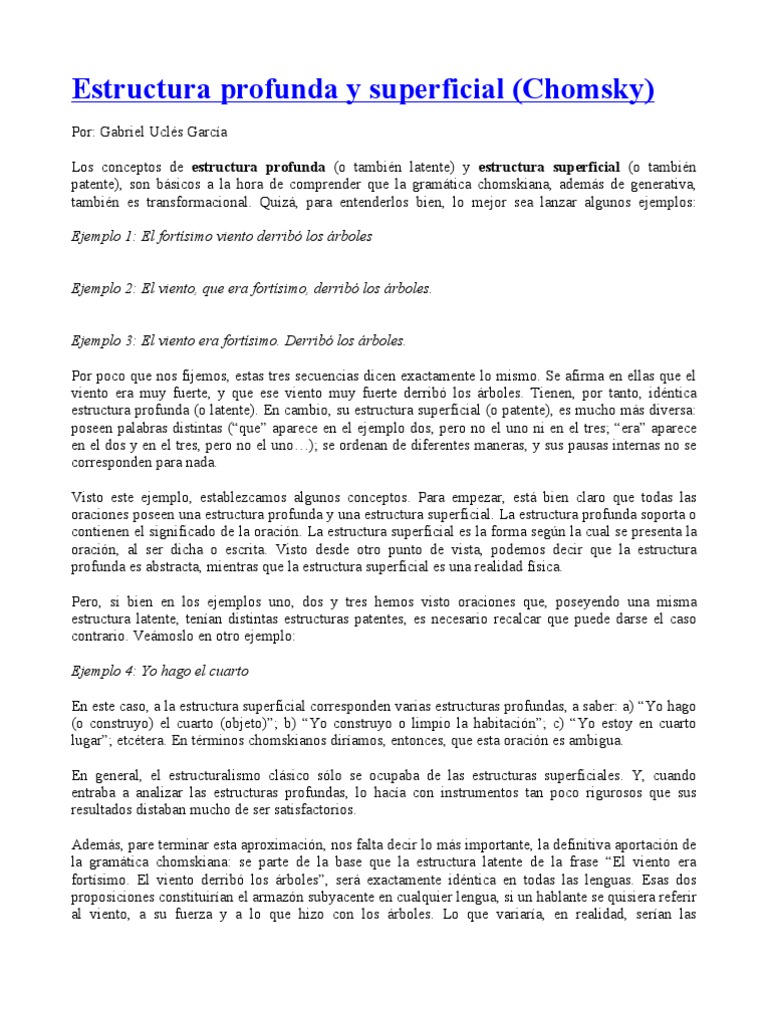 oraciones poseen una estructura profunda y una estructura superficial. La estructura profunda soporta o