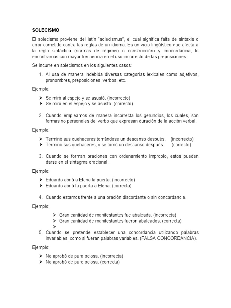 1. El solecismo es uno de los vicios lingüísticos más frecuentes en el uso del