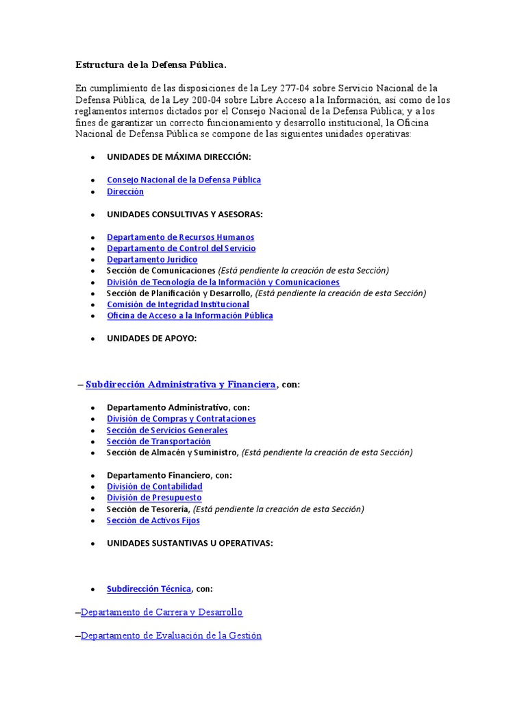Nacional de Defensa Pública se compone de las siguientes unidades operativas: