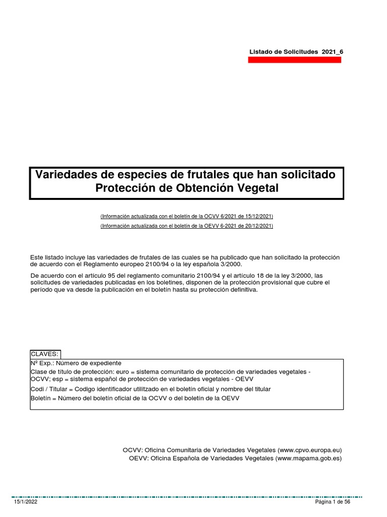 OCVV; esp = sistema español de protección de variedades vegetales - OEVV
