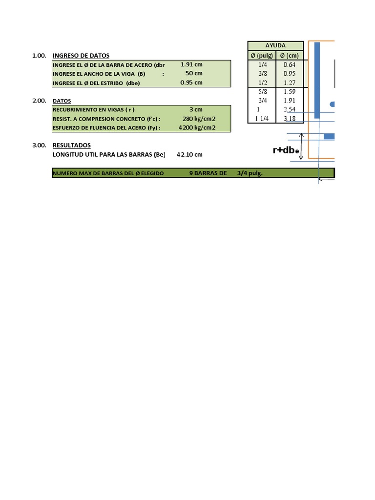 1.00. INGRESO DE DATOS Ø (pulg) Ø (cm)