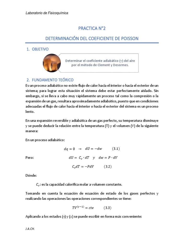 1. Calcular el coeficiente adiabático (𝛾) de poison experimental.