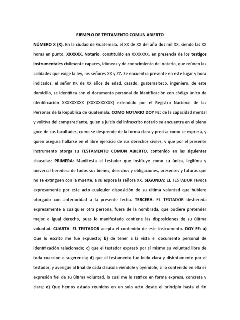 EJEMPLO DE TESTAMENTO COMUN ABIERTO