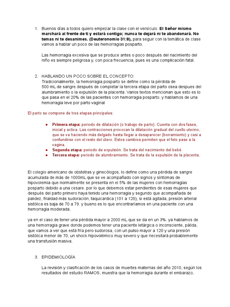 después del parto primero haya tenido una hemorragia y segundo que acompañada de