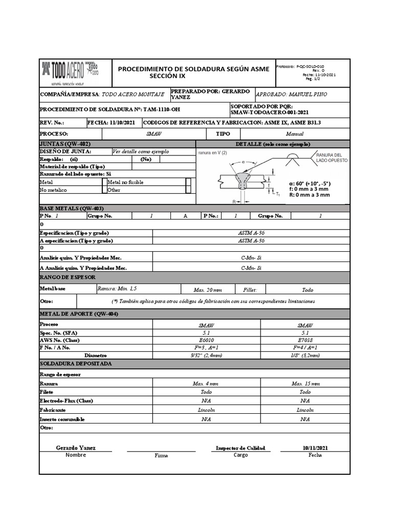 PROCEDIMIENTO DE SOLDADURA SEGÚN ASME Rev. 0