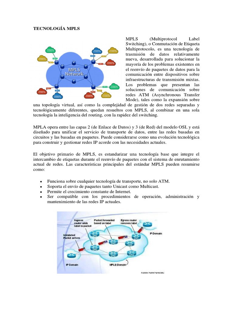 actual de redes. Las características principales del estándar MPLS pueden resumirse
