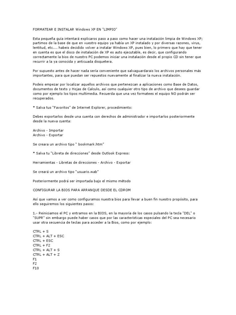 Esta pequeña guía intentará explicaros paso a paso como hacer una instalación limpia de Windows XP;