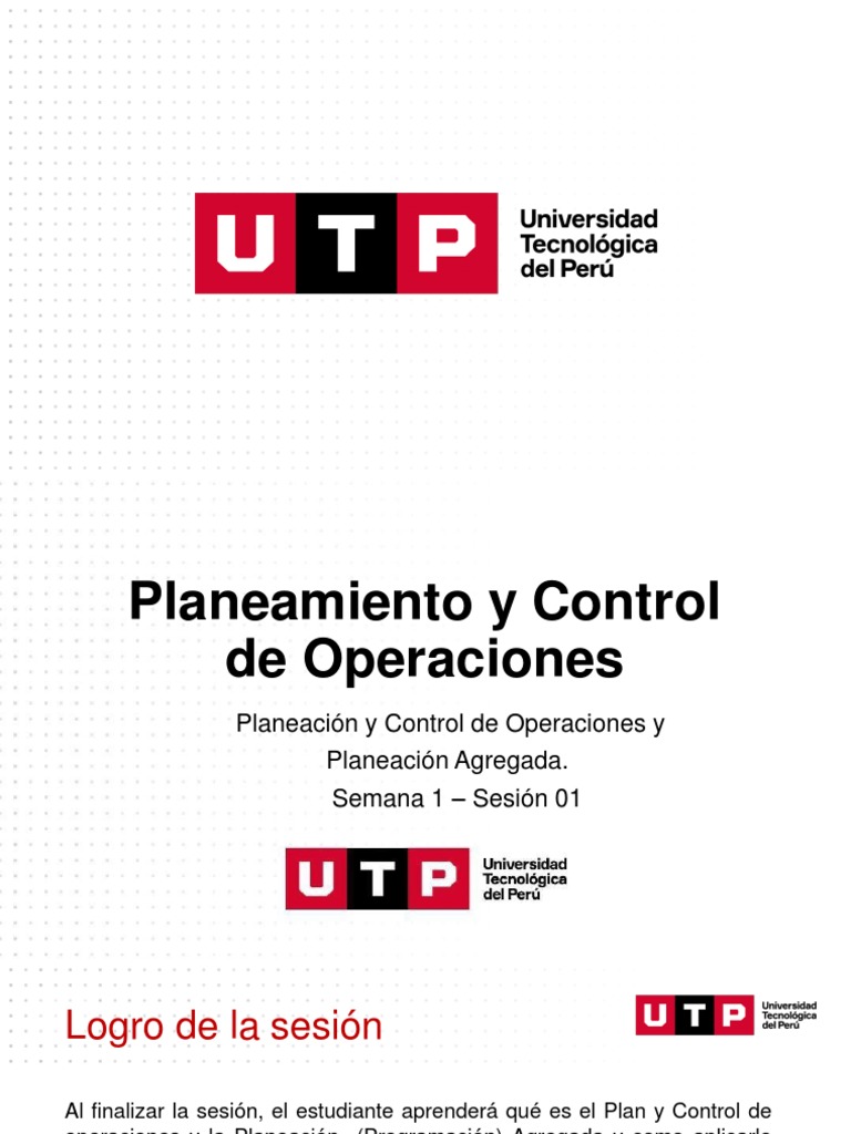 Al finalizar la sesión, el estudiante aprenderá qué es el Plan y Control de
