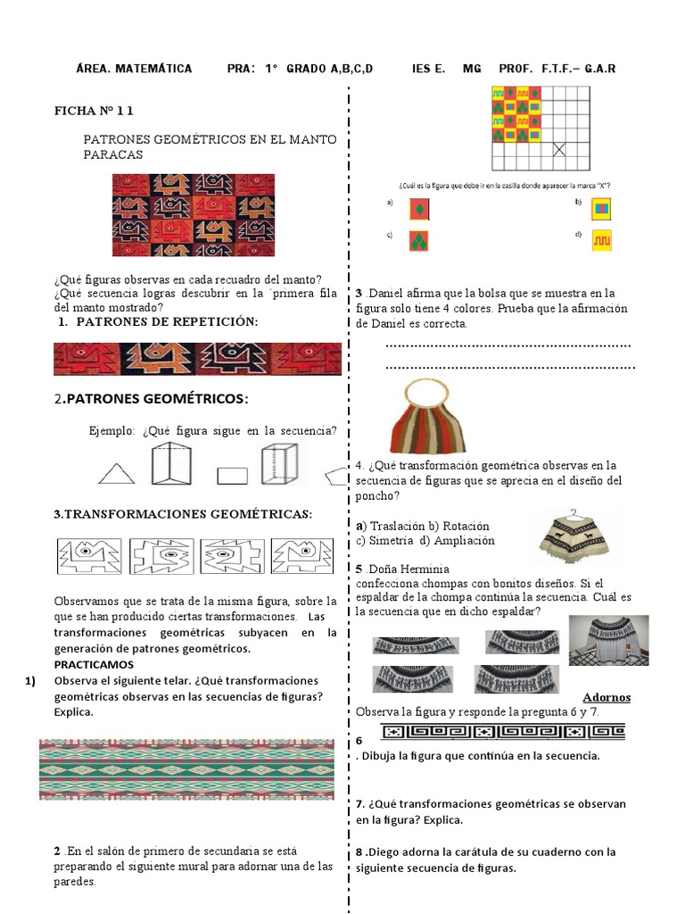 1) Observa el siguiente telar. ¿Qué transformaciones