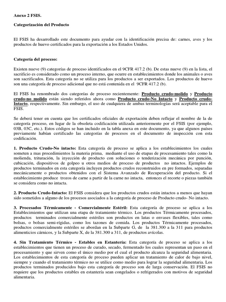 Existen nueve (9) categorías de proceso identificados en el 9CFR 417.2 (b). De estas nueve (9) en la lista, el