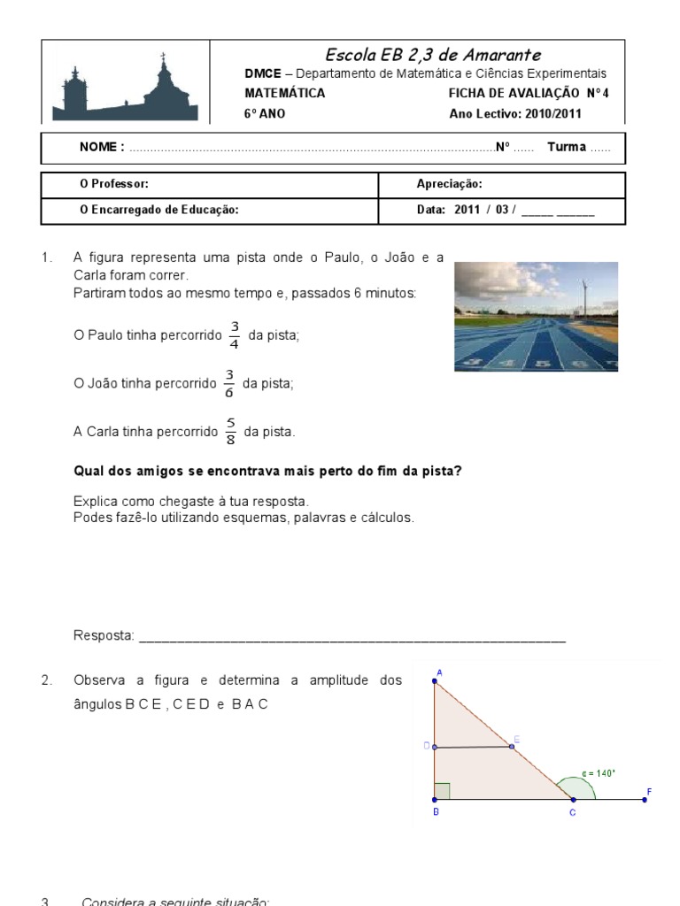 MATEMÁTICA FICHA DE AVALIAÇÃO Nº 4