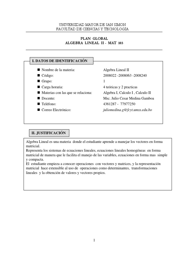 ALGEBRA LINEAL II - MAT 103