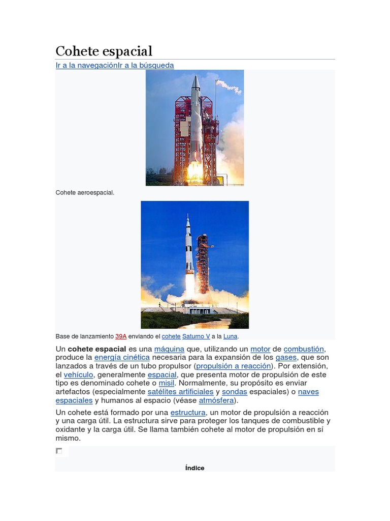 oxidante y la carga útil. Se llama también cohete al motor de propulsión en sí