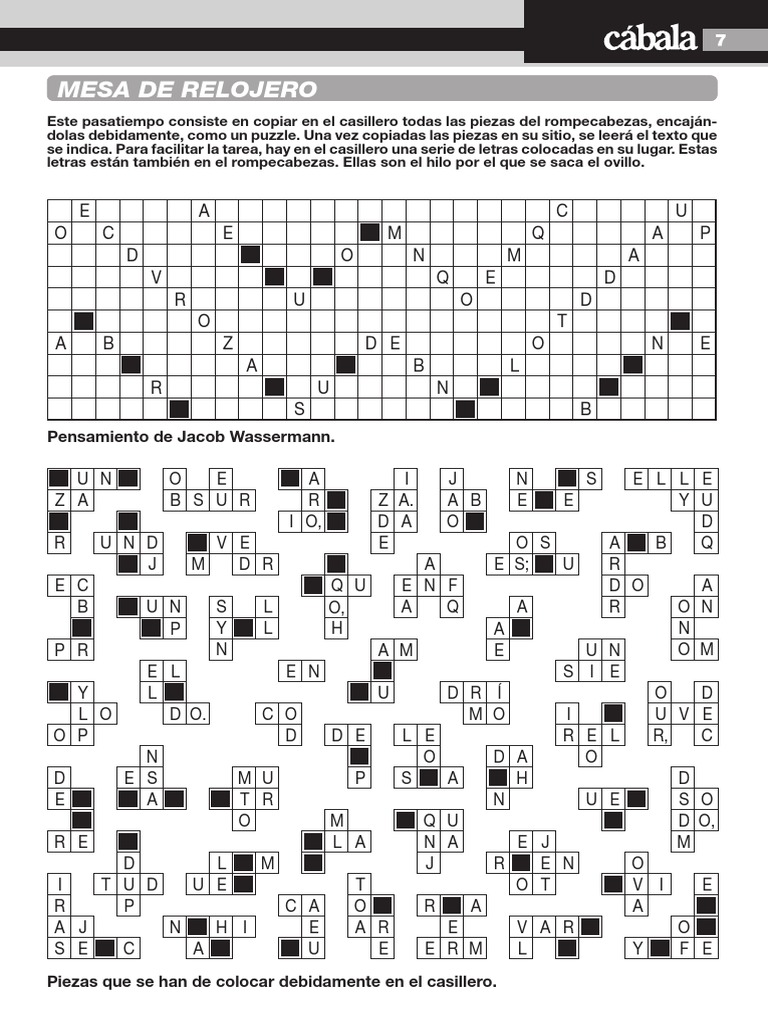 Este pasatiempo consiste en copiar en el casillero todas las piezas del rompecabezas, encaján-