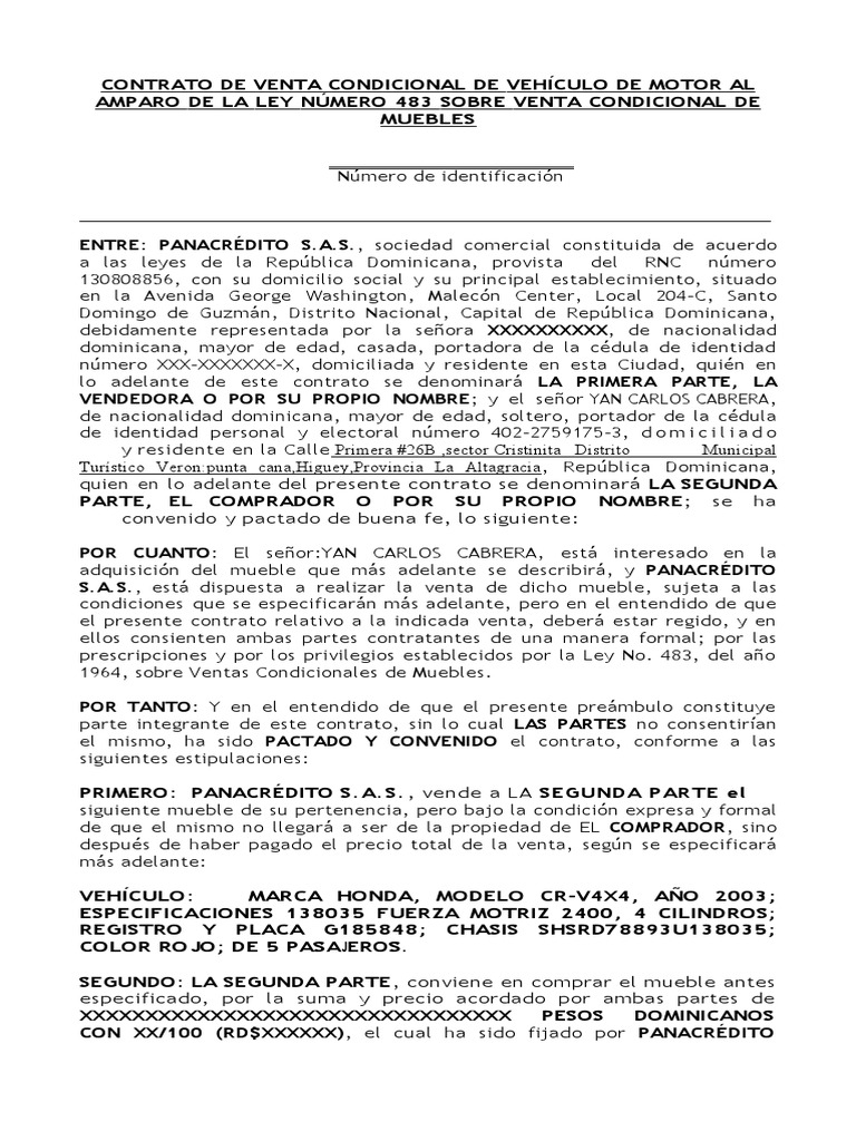 CONTRATO DE VENTA CONDICIONAL DE VEHÍCULO DE MOTOR AL