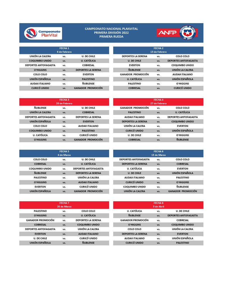 ÑUBLENSE vs. AUDAX ITALIANO COQUIMBO UNIDO vs. EVERTON