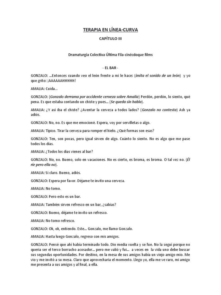 GONZALO: (Gonzalo derrama por accidente cerveza sobre Amalia) Perdón, perdón, lo siento, qué
