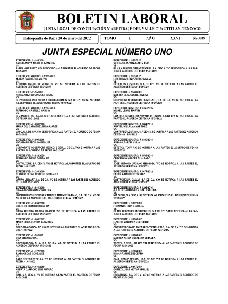 JUNTA LOCAL DE CONCILIACIÓN Y ARBITRAJE DEL VALLE CUAUTITLAN-TEXCOCO