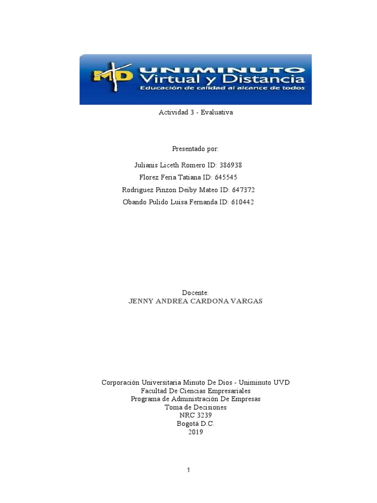 c. ¿Cree que esta fue la mejor opción en la toma de decisiones?......................................9