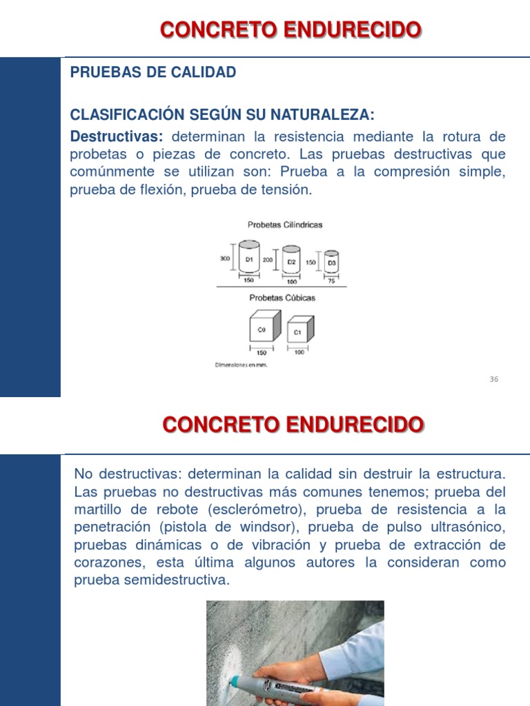 deberá evaluar la resistencia del concreto en el lugar. Cuando sea