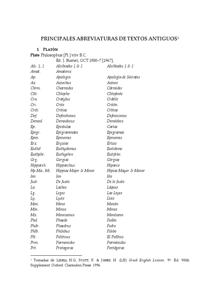 Abreviaturas de Filosofía Clásica