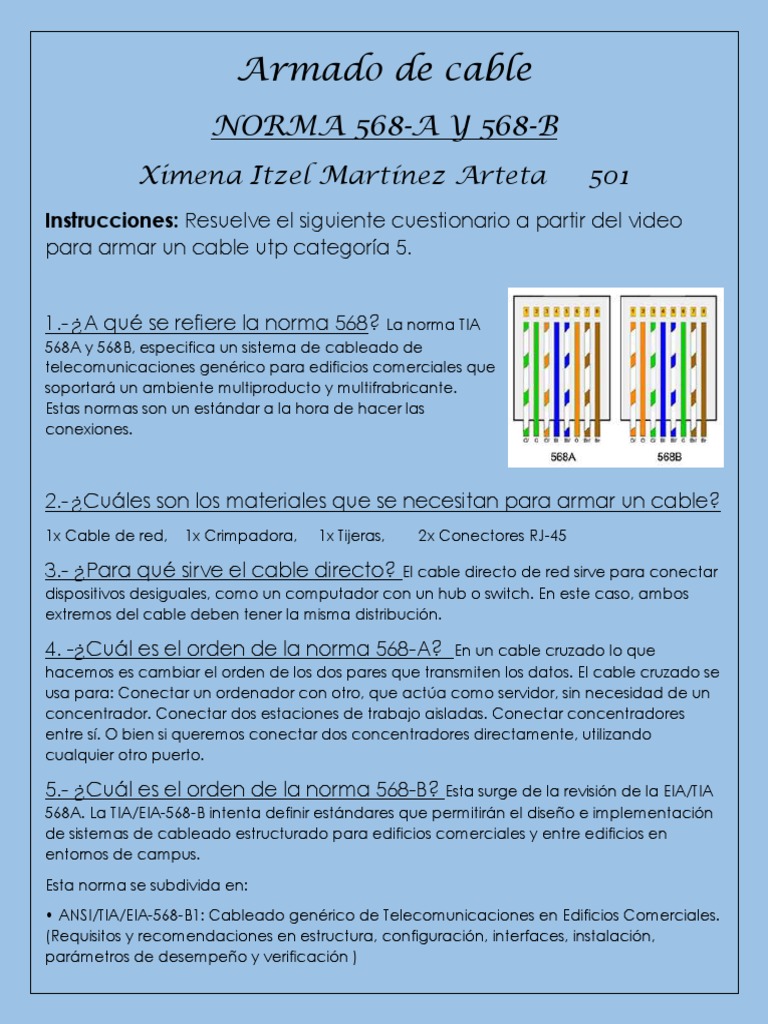 7. -Anota los pasos para armar el cable utiliza las imágenes que se