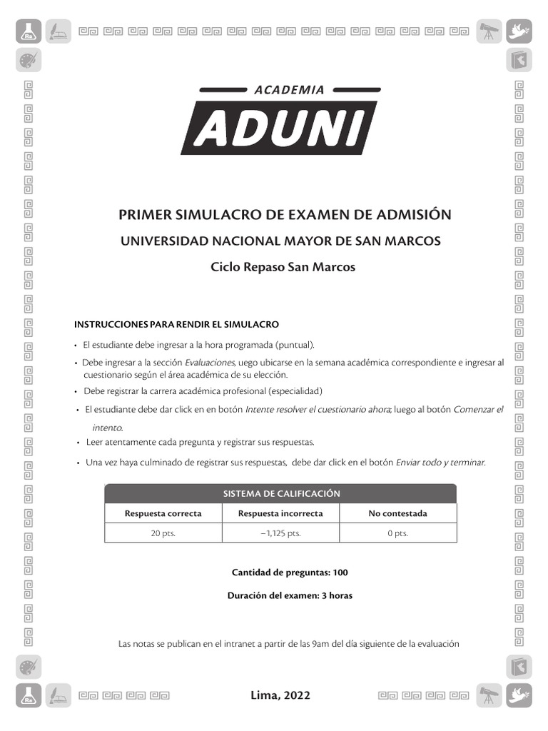 Simulacro de Examen UNMSM 2022