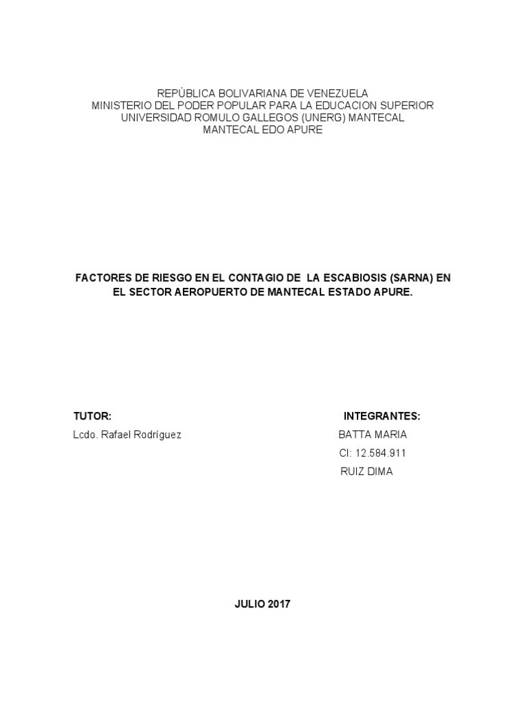 LA ESCABIOSIS (SARNA) de los cuales se encuentra estructurado en seis