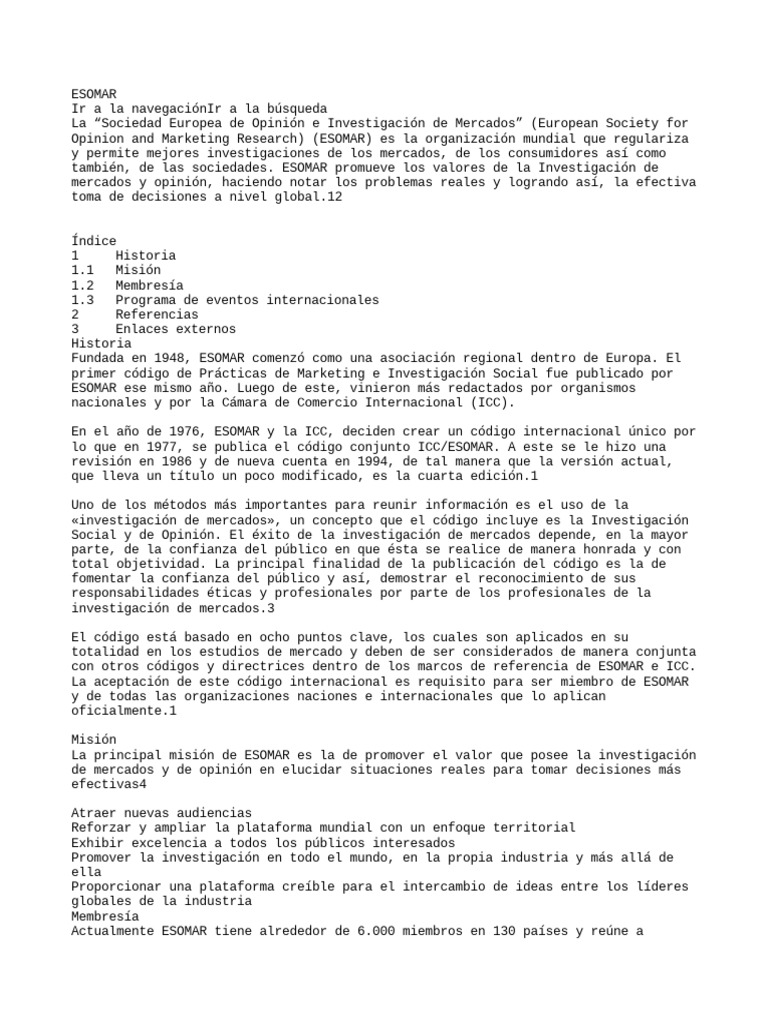 «European Society for Opinion and Marketing Research (ESOMAR)» (en inglés).
