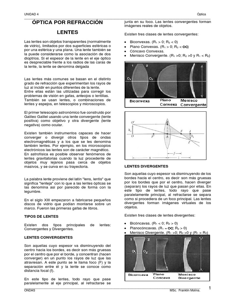 ÓPTICA POR REFRACCIÓN junta en su foco. Las lentes convergentes forman