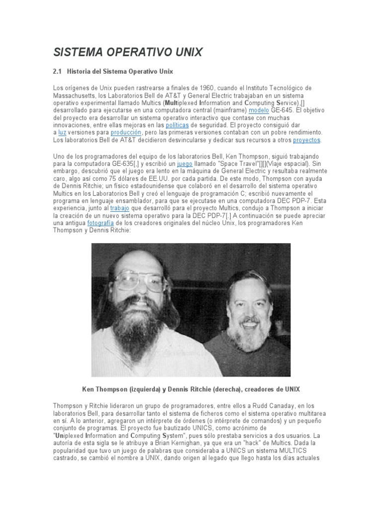 2.1 Historia del Sistema Operativo Unix