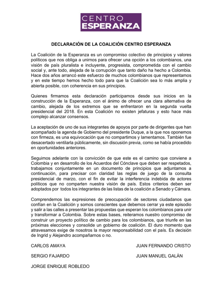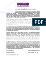 DECLARACIÓN DE LA COALICIÓN CENTRO ESPERANZA