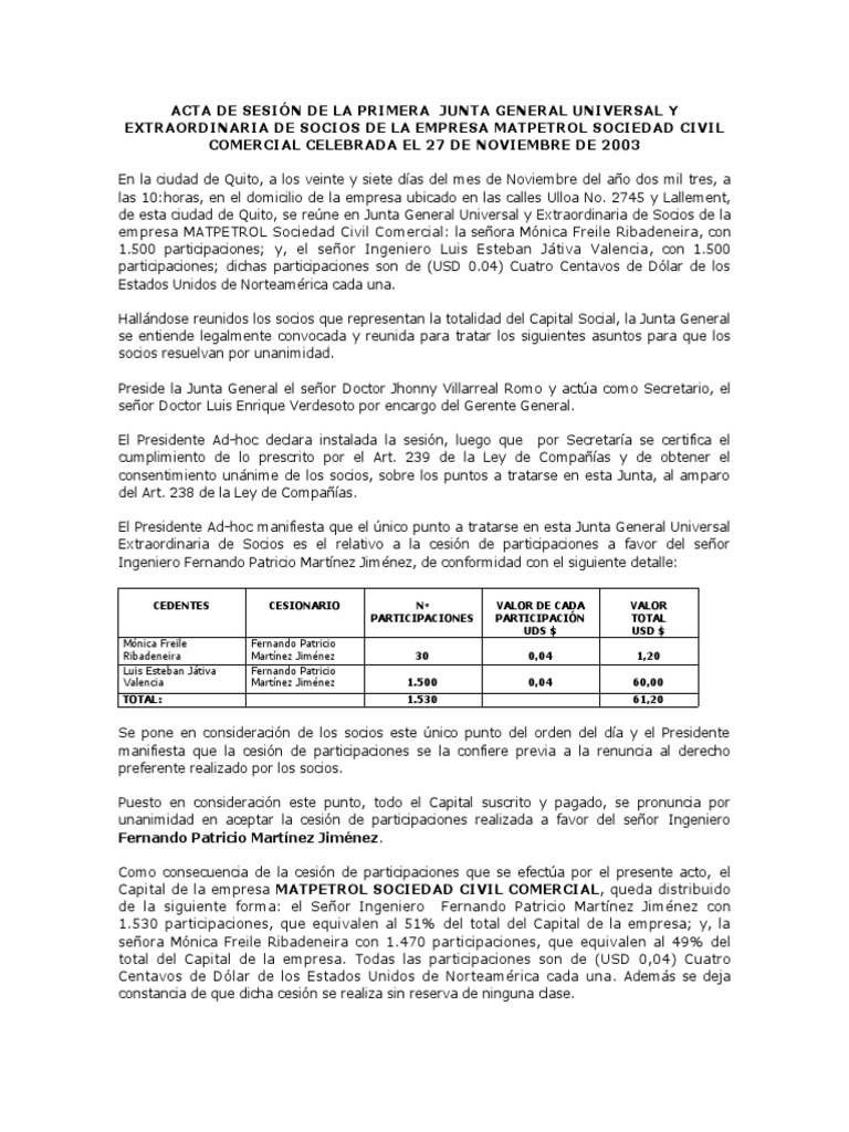 EXTRAORDINARIA DE SOCIOS DE LA EMPRESA MATPETROL SOCIEDAD CIVIL