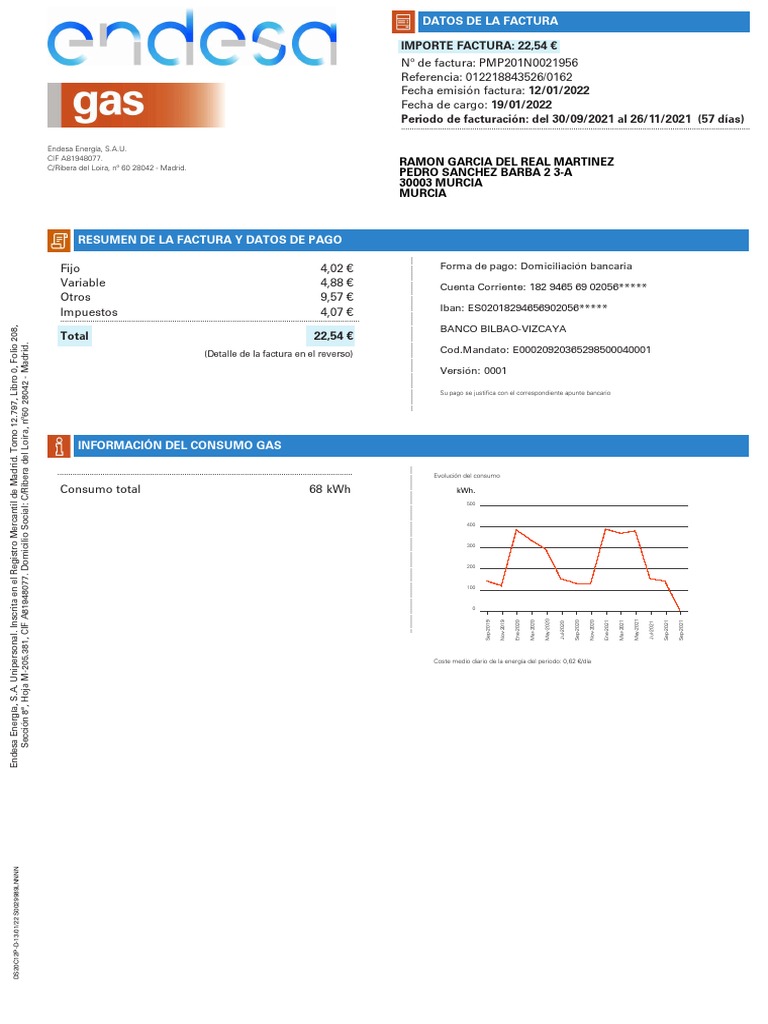 Periodo de facturación: del 30/09/2021 al 26/11/2021 (57 días)
