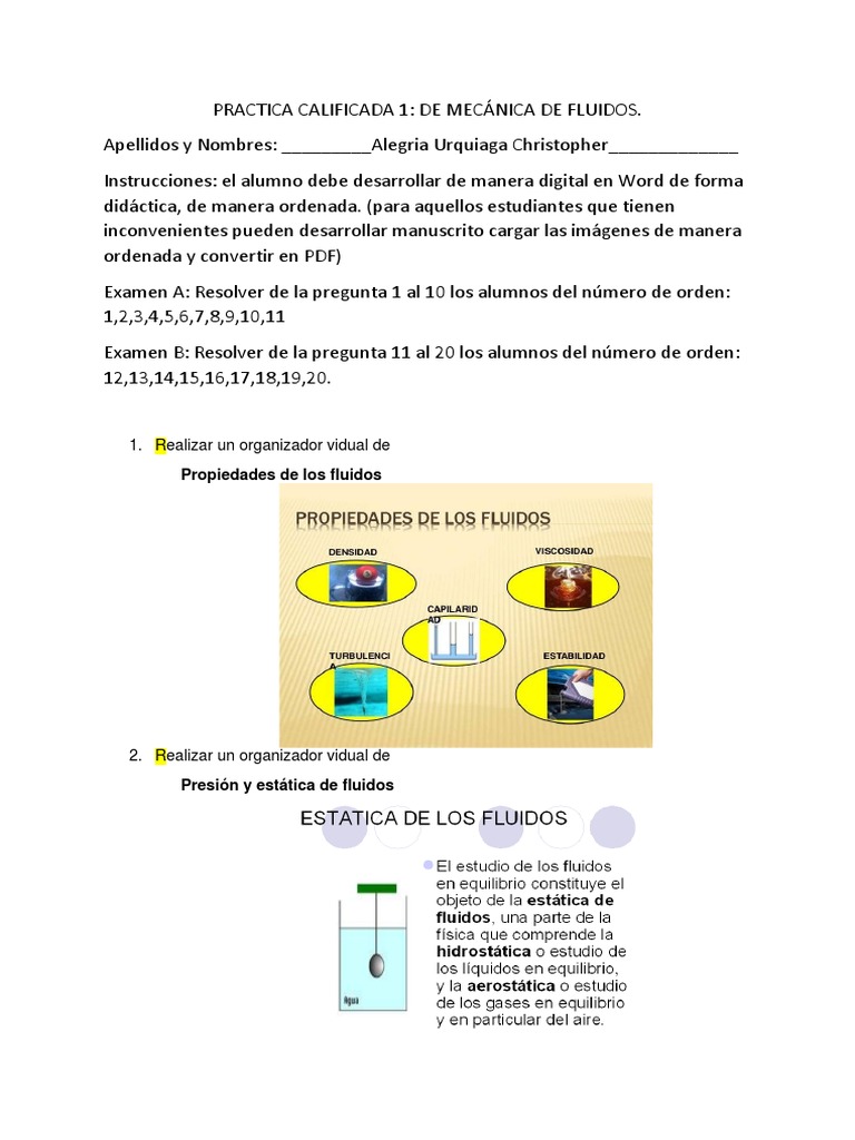 PRACTICA CALIFICADA 1: DE MECÁNICA DE FLUIDOS.