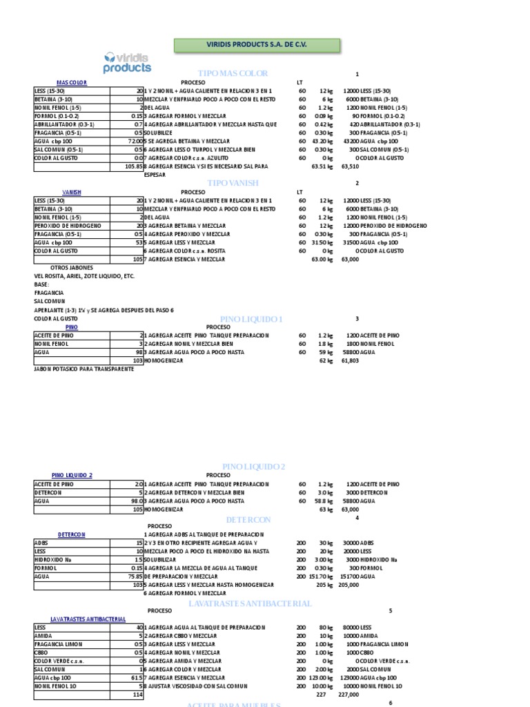 AGUA cbp 100 72.00 5 SE AGREGA BETAINA Y MEZCLAR 60 43.20 kg 43200 AGUA cbp 100