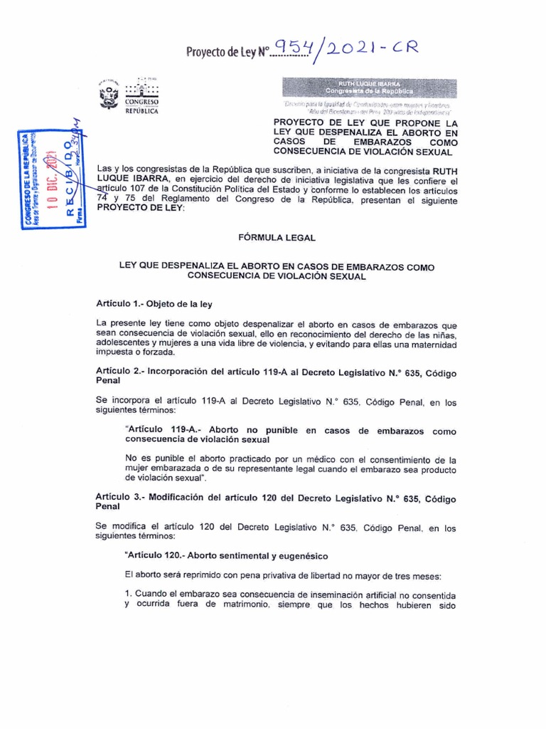 En caso de] Perú, donde el aborto casos de violación sexual esta criminalizado, las
