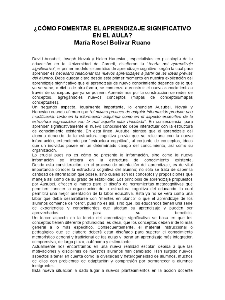 aprendizaje significativo que el aprendizaje de nuevo conocimiento depende de lo que