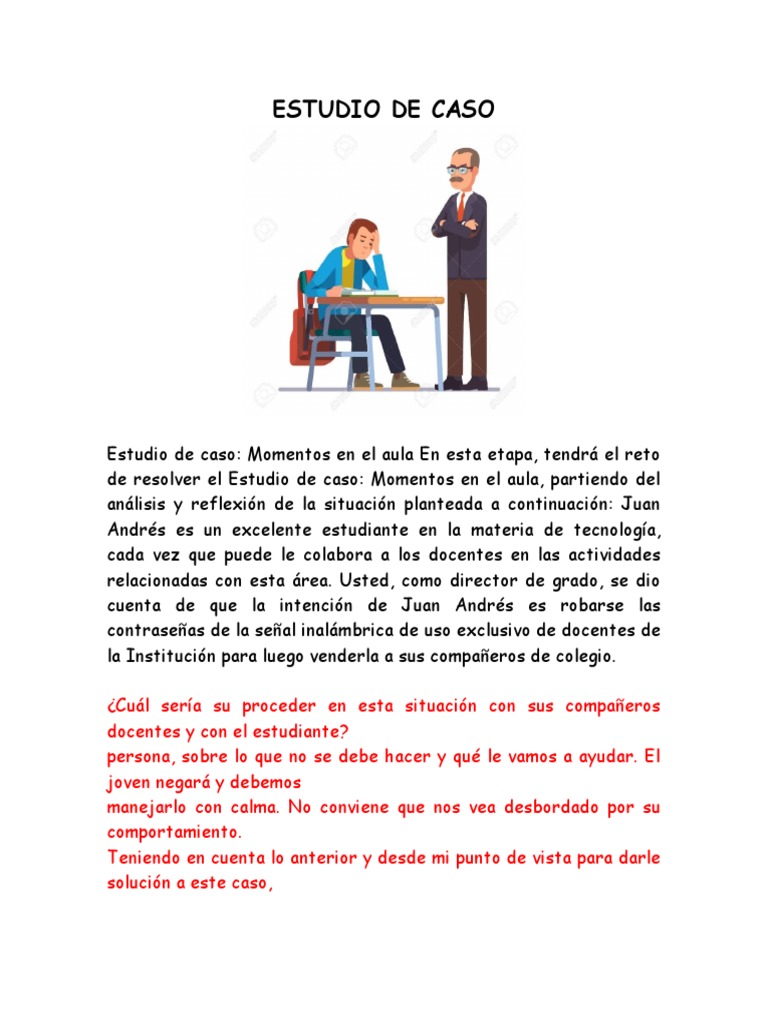 de resolver el Estudio de caso: Momentos en el aula, partiendo del