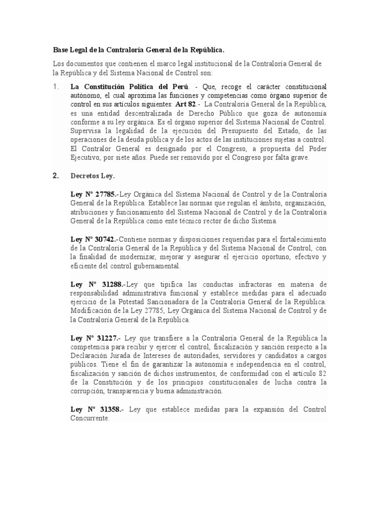 Base Legal de la Contraloría General de la República.